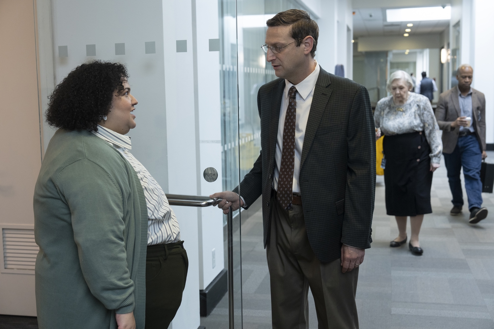 Breadcrumb Pressroom HBO The Chair Company Images See Images Photo October 14, 2025 Login Required Please Login or Register first to download this content. Photograph by Virginia Sherwood/HBO Glo Tavarez, Tim Robinson HBO The Chair Company Season 1 - Episode 1